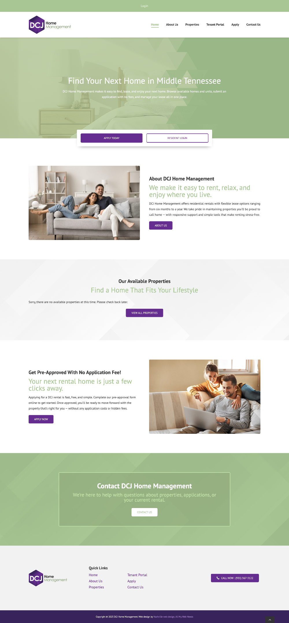 Built to support long-term growth, the platform is structured to scale alongside the business as it expands from a single property to a larger portfolio. The experience prioritizes ease of use, clear navigation, and frictionless interactions, reinforcing a hassle-free rental process from start to finish. Overall, the site positions DCJ Home Management as a modern, efficient solution for property management while driving inquiries, applications, and tenant engagement through a clean, intuitive digital experience.